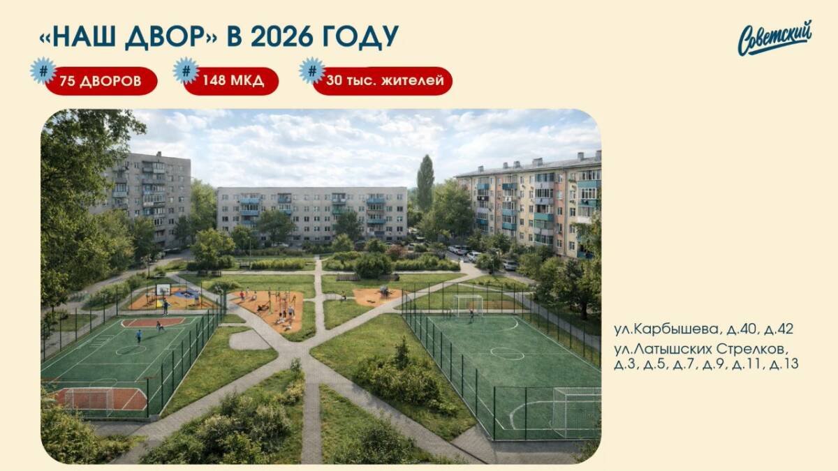В 2025 году для укрепления добрососедских связей в шести дворах района прошел «Курше фест», который собрал более 6,5 тыс. участников. В этом году планируется обновить ещё 75 дворов, что затронет 30 тыс. жителей и создаст новые возможности для комфортного досуга и отдыха.