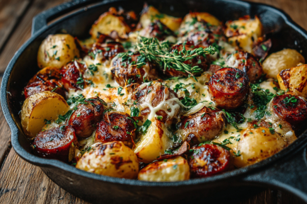 Сочетание картофеля и охотничьих колбасок — проверенная классика, но в этом рецепте она раскрывается по-новому. Лёгкая варка картофеля и томление под фольгой гарантируют сочность и насыщенный вкус.