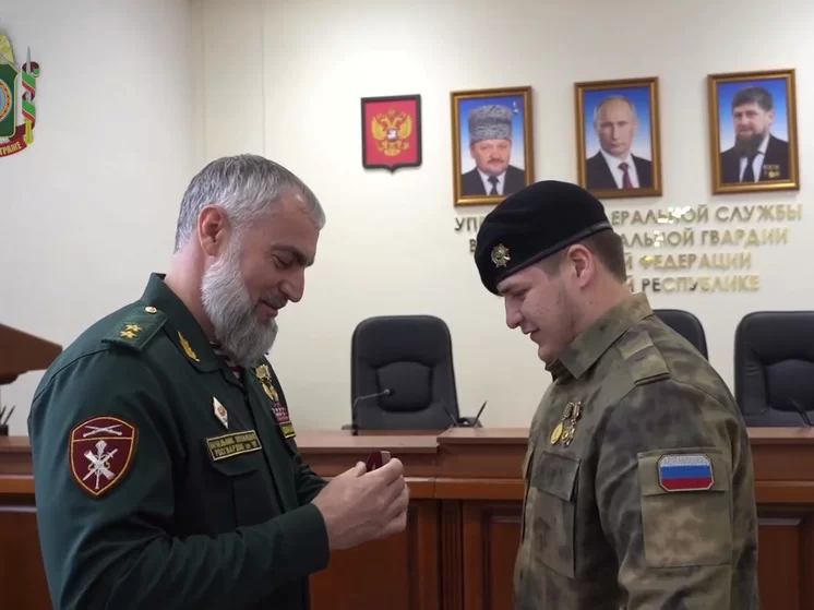 В мае последовали сразу две медали ОМОН — и между ними прошло ровно десять дней. В августе — государственная медаль «Защитник Чеченской Республики», учреждённая в 2004 году и предназначенная тем, кто обеспечивал безопасность республики в самые тяжёлые её годы. В декабре — почётная грамота Росгвардии и медаль памяти первого президента республики. А буквально накануне январской аварии, 17 января 2026 года, командир ОМОН «Ахмат-Грозный» Анзор Бисаев вручил Адаму золотую медаль «За заслуги в повышении безопасности атомных станций» — за работу по охране Запорожской АЭС.