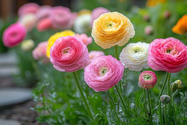 Ранункулюс — его густомахровые бутоны диаметром до 10 см с атласными лепестками напоминают миниатюрные розы. При этом он не боится болезней, может расти как на солнце, так и в тени, не требует частых подкормок и стоит в вазе до двух недель.