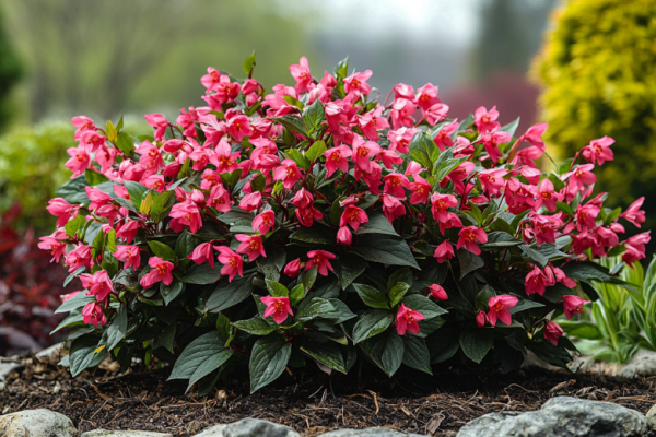 Вейгела — это кустарник, уникальная способность которого цвести дважды за сезон. Первое, самое пышное цветение наступает в мае-июне, когда кусты покрываются цветками белыми, розовыми, малиновыми или желтыми цветами.