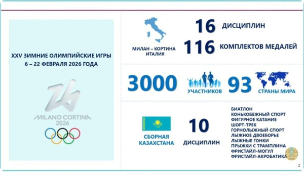 Кроме того, по словам министра, 7 спортсменов национальной команды завоевали 10 лицензий на XIV Зимние Паралимпийские игры. Соревнования пройдут с 6 по 15 марта 2026 года в итальянских городах Милан и Кортина-д’Ампеццо.