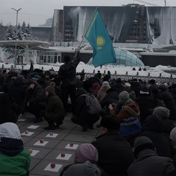 С момента начала январских событий, унесших жизни, только по официальным данным, 227 человек, прошло 40 дней. В память о погибших сегодня на площади Республики прошла траурная акция. О её проведении объявил бизнесмен, в прошлом политический активист, Булат Абилов.