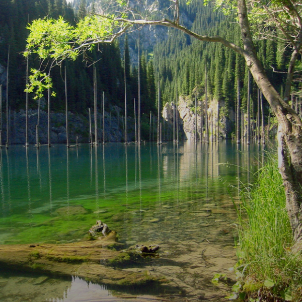 Кольсай, или, как называют его жители, Жемчужина Тянь-Шаня находится в 330 километрах от Алматы. Здесь можно запечатлеть себя на фоне трёх озер, окруженных высокими елями и горами. Вы можете арендовать лодку и сделать атмосферную фотографию в самом центре озера.